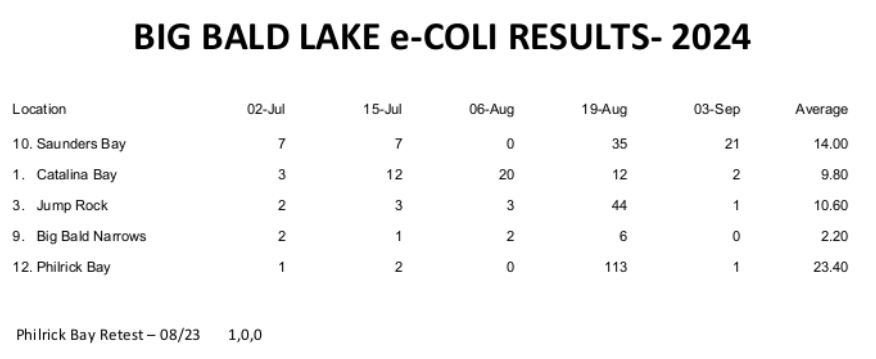 See the Kawartha Lake Stewards Annual Reports for past E.coli and Phosphorus and Secchi Depth testing results.