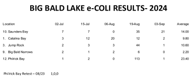 See the Kawartha Lake Stewards Annual Reports for past E.coli and Phosphorus and Secchi Depth testing results.